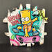 This unique and original contemporary artwork, "Bart Simpson Forever Young," was created by contemporary artist Sufyr. The artist used Posca, graffiti, and collage techniques to create this small-format work on wood and cardboard in the style of street art. Ultra-glossy finish with automotive varnish.
