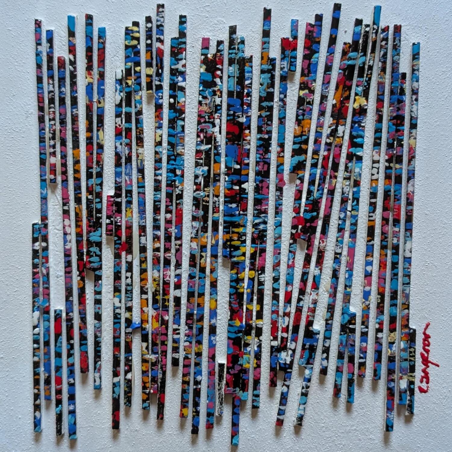 This unique and original contemporary artwork "Bc37 vibration rouge bleu" has been created by the contemporary artist Langeron Luc.