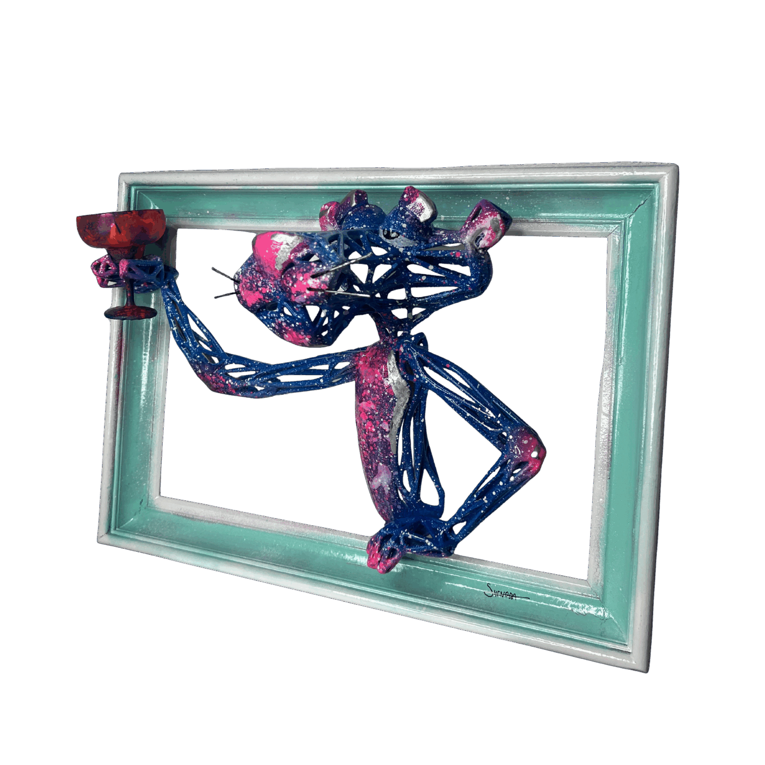 This unique and original contemporary artwork "PANTHERE ROSE TCHIN ! NUIT BLEUTÉE" has been created by the contemporary artist Shenoda.