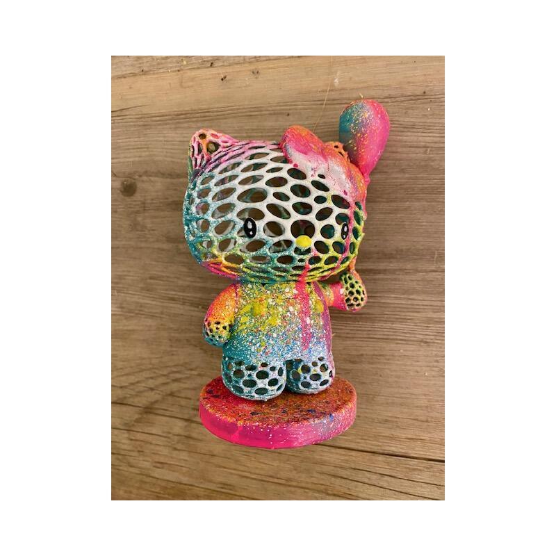 The artist used Resin, Graffiti media to create this Pop-art, Small size sculpture.