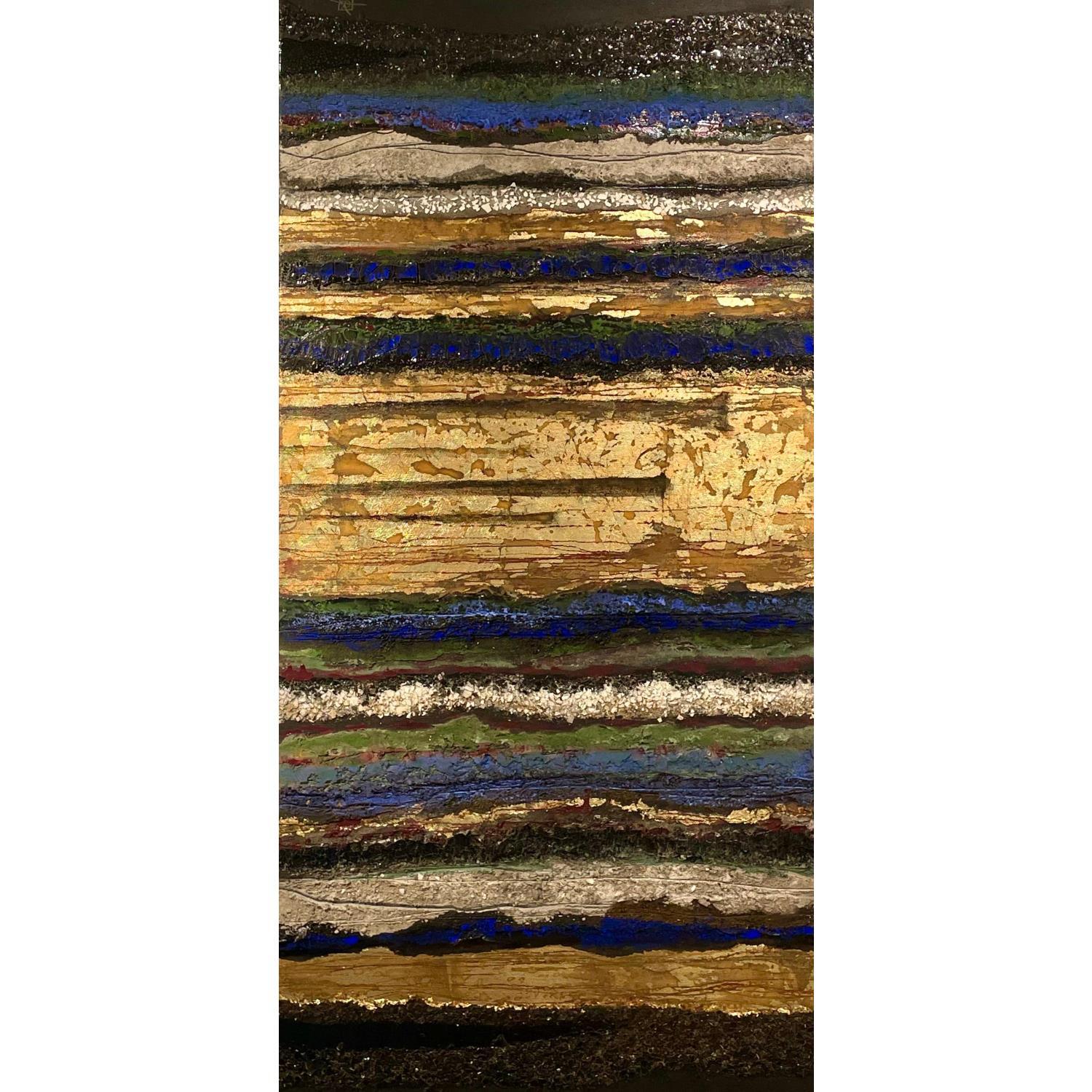The artist used Acrylic, Gold leaf media on Canvas board to create this Abstract, Large size painting.