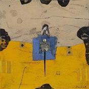Very early on Thierry was attracted to painting and electronic music. His musical affinities took him into the world of musician Brian Eno, initiator of the "Ambient Music" concept. Discreet music, barely perceptible, designed to encourage and stimulate a quiet space for reflection, "ambient" became his "artistic catalyst". His passion for art led him to study applied graphic and fine arts, and textile design. The first glance at Thierry's paintings is almost inexorably on the photocopied vignettes of human figures found in all of his works. They act like a magnet and capture our attention. They attract us or repel us, but they are the heart of the composition. Stirring up remembrance, he strews improbable fragments of memories about his photographic cameo. These scattered milestones organize to recreate harmony, seeking a possible timeless and universal balance.