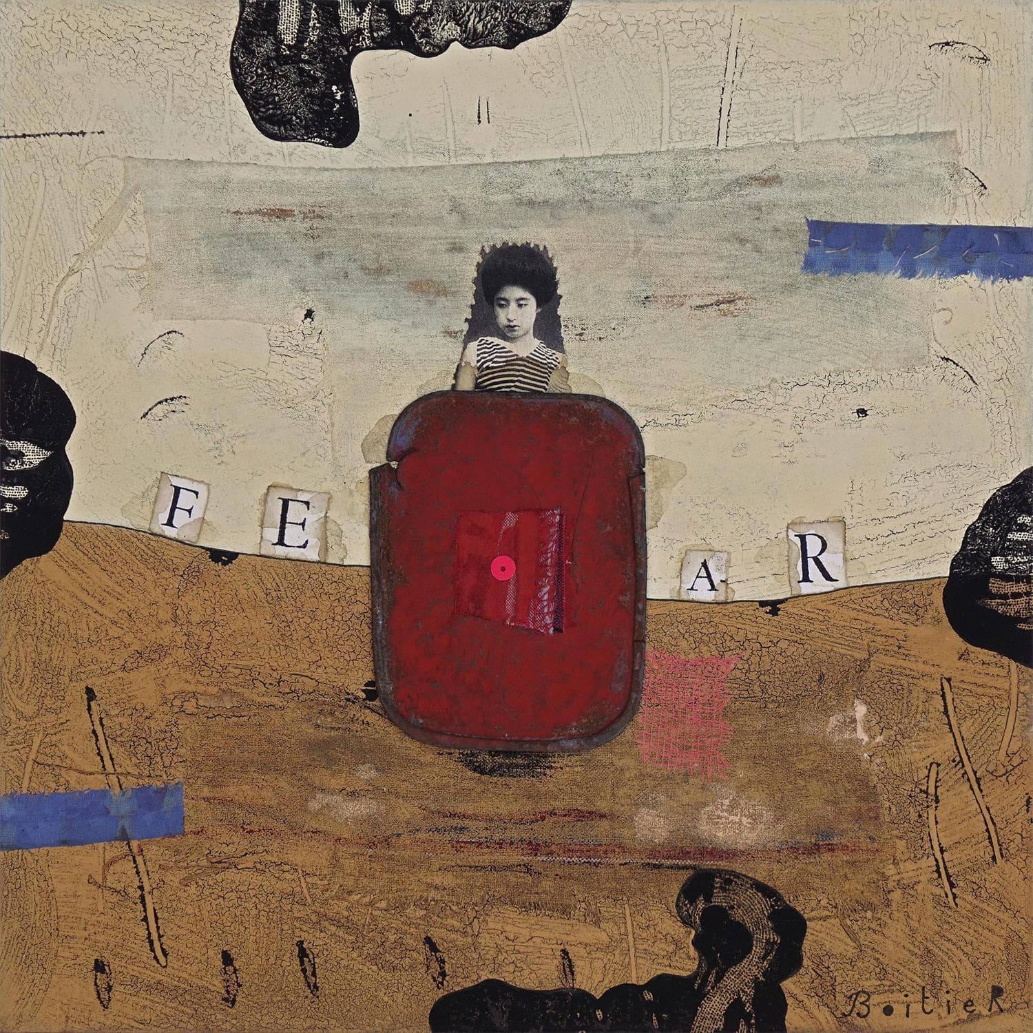 Very early on Thierry was attracted to painting and electronic music. His musical affinities took him into the world of musician Brian Eno, initiator of the "Ambient Music" concept. Discreet music, barely perceptible, designed to encourage and stimulate a quiet space for reflection, "ambient" became his "artistic catalyst". His passion for art led him to study applied graphic and fine arts, and textile design. The first glance at Thierry's paintings is almost inexorably on the photocopied vignettes of human figures found in all of his works. They act like a magnet and capture our attention. They attract us or repel us, but they are the heart of the composition. Stirring up remembrance, he strews improbable fragments of memories about his photographic cameo. These scattered milestones organize to recreate harmony, seeking a possible timeless and universal balance.