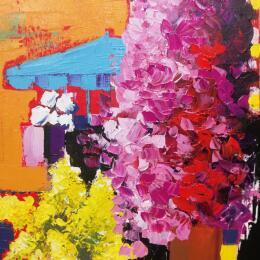 This unique and original contemporary artwork "MARCHE AUX FLEURS" on the subject of Life style has been created by the contemporary artist L'huillier Françis.