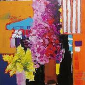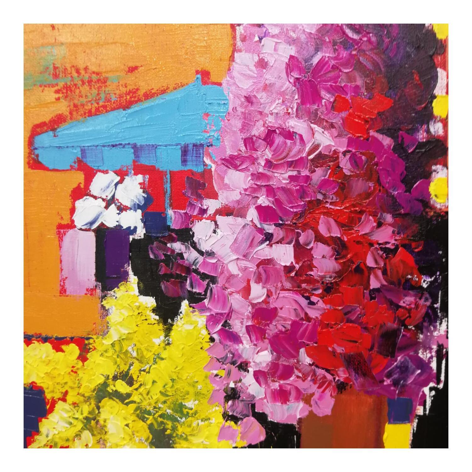 MARCHE AUX FLEURSPainting MARCHE AUX FLEURS by L'huillier Françis | Painting Abstract Life style Oil