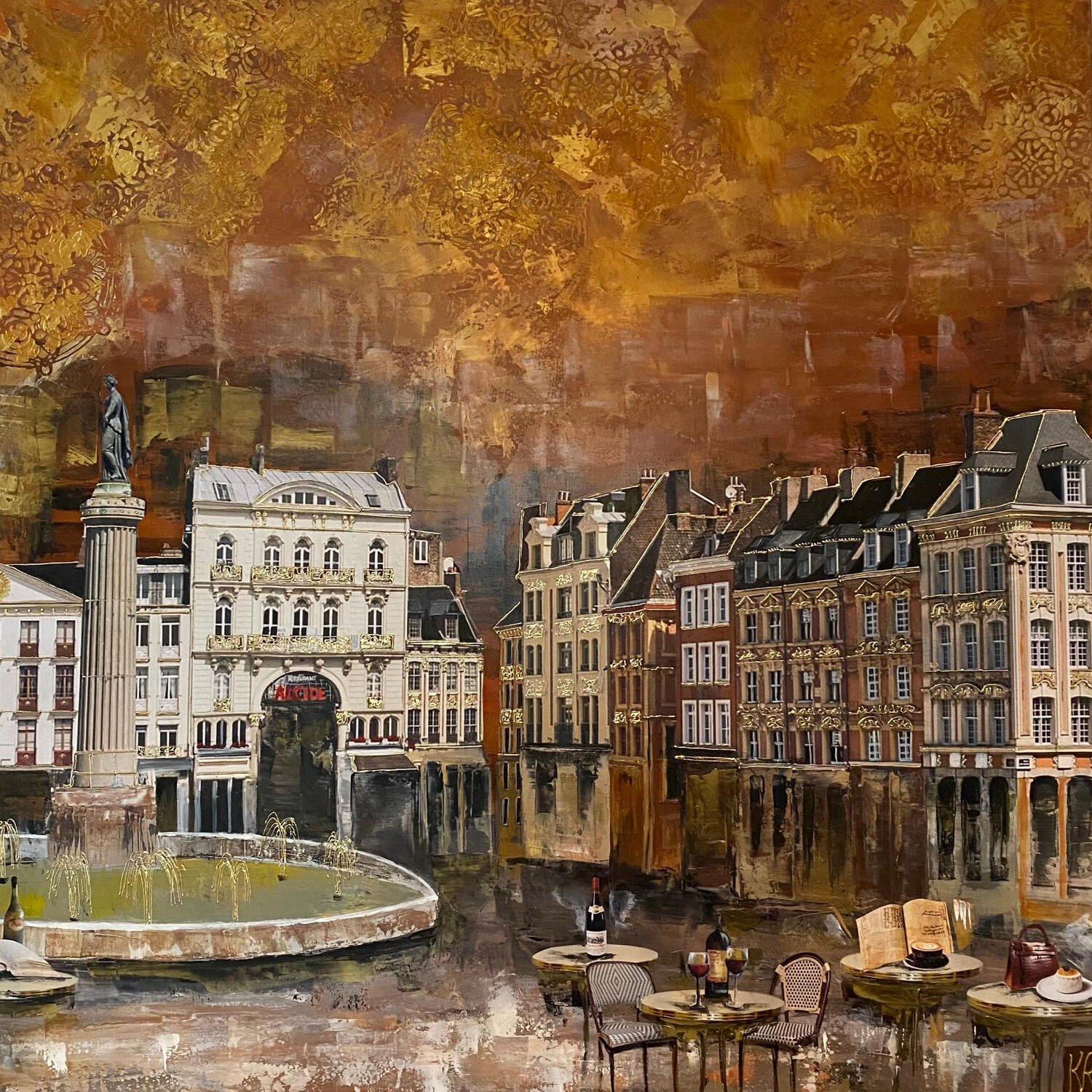 This unique and original contemporary artwork "Lille, la chaleureuse " on the subjects of Life style, Urban has been created by the contemporary artist Romanelli Karine.