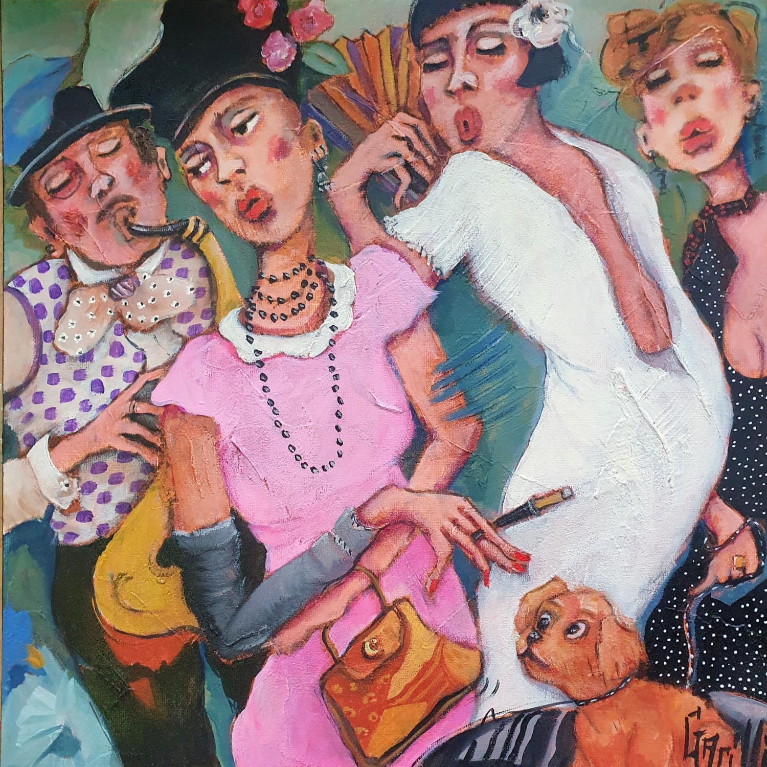 This unique and original contemporary artwork "all seduced by the saxophonist" on the subject of Life style has been created by the contemporary artist Garilli Nicole.