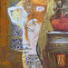 The artist used Acrylic, Gluing media on Canvas board to create this Figurative, Small size painting.