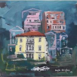 The artist likes to photograph the old houses located in the old districts of Beirut. From there, she composes subtle, half-griffed, half-painted, skilfully worked and richly colored paintings that are both harmonious and textured, oscillating between the artist's will? To pay homage to the unique architectural diversity of her city which, as time goes by, tends to disappear under the impulse of an always growing urbanization.