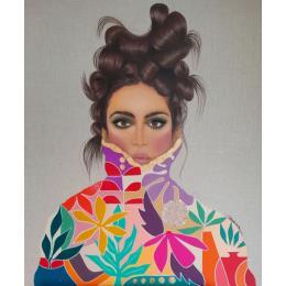 This unique and original contemporary artwork "Atala" on the subject of Portrait has been created by the contemporary artist Rosângela.