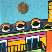 Painting Dernier étage by Lovisa | Painting Figurative Urban Acrylic Gluing Posca Gold leaf Upcycling