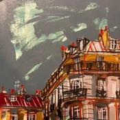 This unique and original contemporary artwork "Le dehors se rallume" on the subjects of Urban, Architecture has been created by the contemporary artist Anicet Olivier.