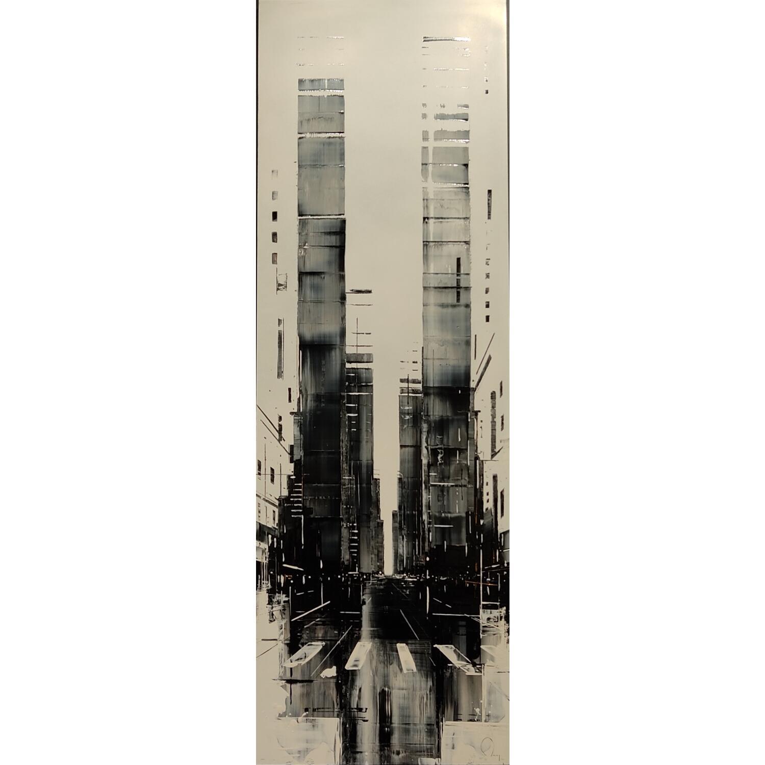Although he has achromatopsia (absence of color vision), Julien Rey takes us on a journey through his paintings to urban landscapes. Julien Rey's story begins like all great stories: with an impossible dream. With achromatopsia, the artist sees only in black and white. Yet, this condition did not prevent him from traveling to the borders of Burma, from changing his life (he became a Buddhist monk there) or from embarking on art. From his trip to Burma, he brought back a perfect mastery of gold leaf, a characteristic element of his work. His technique based on lacquer worked with a knife and gold leaf inlays places light at the center of his works. Marked by Zen philosophy, he creates minimal compositions that appear as suspended moments, poetic pauses.