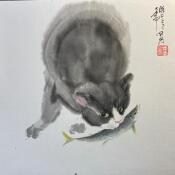 Painting Cat 1 by Yu Huan Huan | Painting Figurative Animals Ink