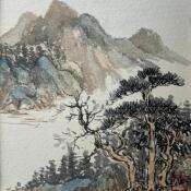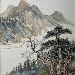 This unique and original contemporary artwork "Landscape & Old Tree" on the subject of Nature has been created by the contemporary artist Yu Huan Huan.