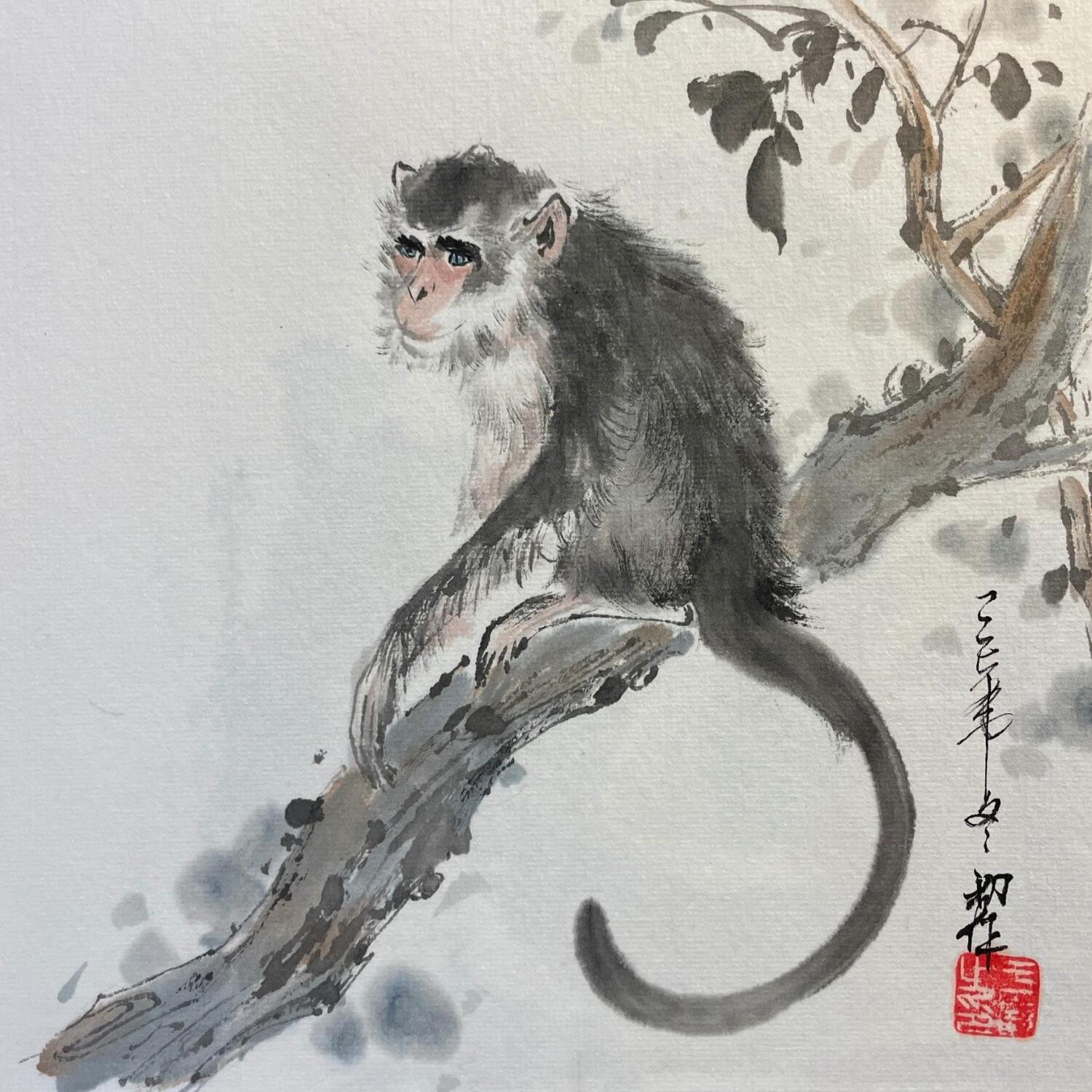 Painting Monkey by Yu Huan Huan | Painting Figurative Animals Ink