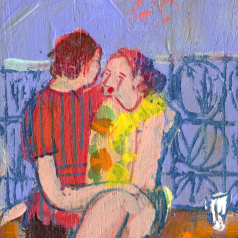 Lourdes Ral is a Spanish artist at the crossroads of painting and design. Trained in art history, she worked for a long time in graphic design before devoting herself fully to creation. Her paintings depict intimate scenes: readings, conversations, suspended moments in a café or garden. Her delicate, sensitive universe celebrates the beauty of everyday life and the warmth of shared moments.