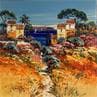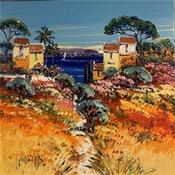 This unique and original contemporary artwork "Terrasse fleurie" on the subject of Landscapes has been created by the contemporary artist Corbière Liisa.