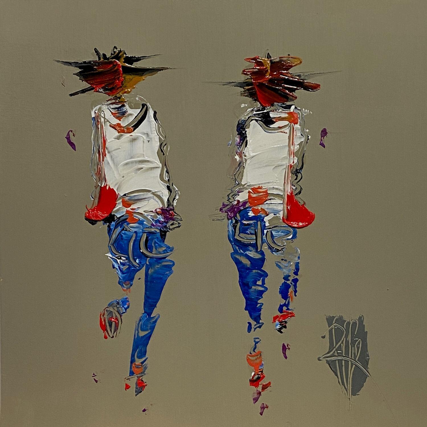 This unique and original contemporary artwork "Copines" on the subject of Life style has been created by the contemporary artist Raffin Christian.