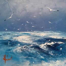 The artist used the Oil technique to create this small-format painting on Canvas in the Figurative style on the themes of Seascapes and Landscapes.