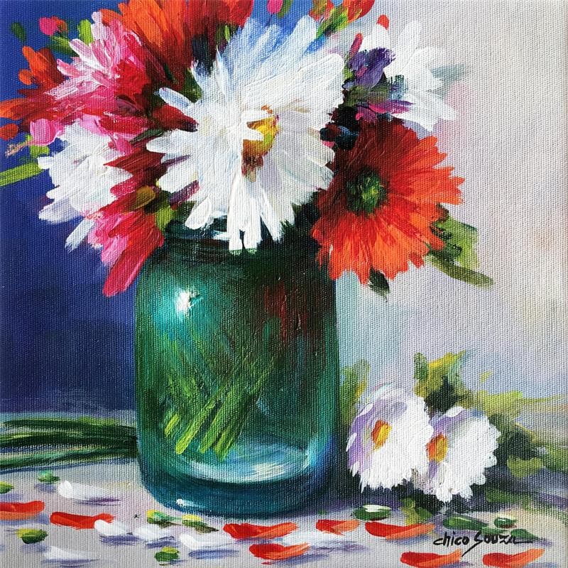 This unique and original contemporary artwork "Despetalando" on the subject of still-life has been created by the contemporary artist Chico Souza.