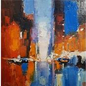 Daniel Castan has conserved his working discipline, a taste for urgent situations and a passion for megalopolises from his first career path as a graphic designer. It was during this time that Daniel travelled extensively in New York and Hong Kong and developed a fascination with the urban world and its larger-than-life perspectives, and now he recreates these graphic ambiances in his painting. A graduate in fine arts, he finally decided in his forties to satisfy his need to create. Not worrying about useless reflections, Daniel Castan maintains a relationship marked by physicality in his paintings. His perspective is one of a distance runner who trains for many hours a day and obstinately moves forward. Only colour and the material count for him and he effectively maintains a power relationship with the canvas: he never waits for an illusionary inspiration, his works are born out of work and perseverance.