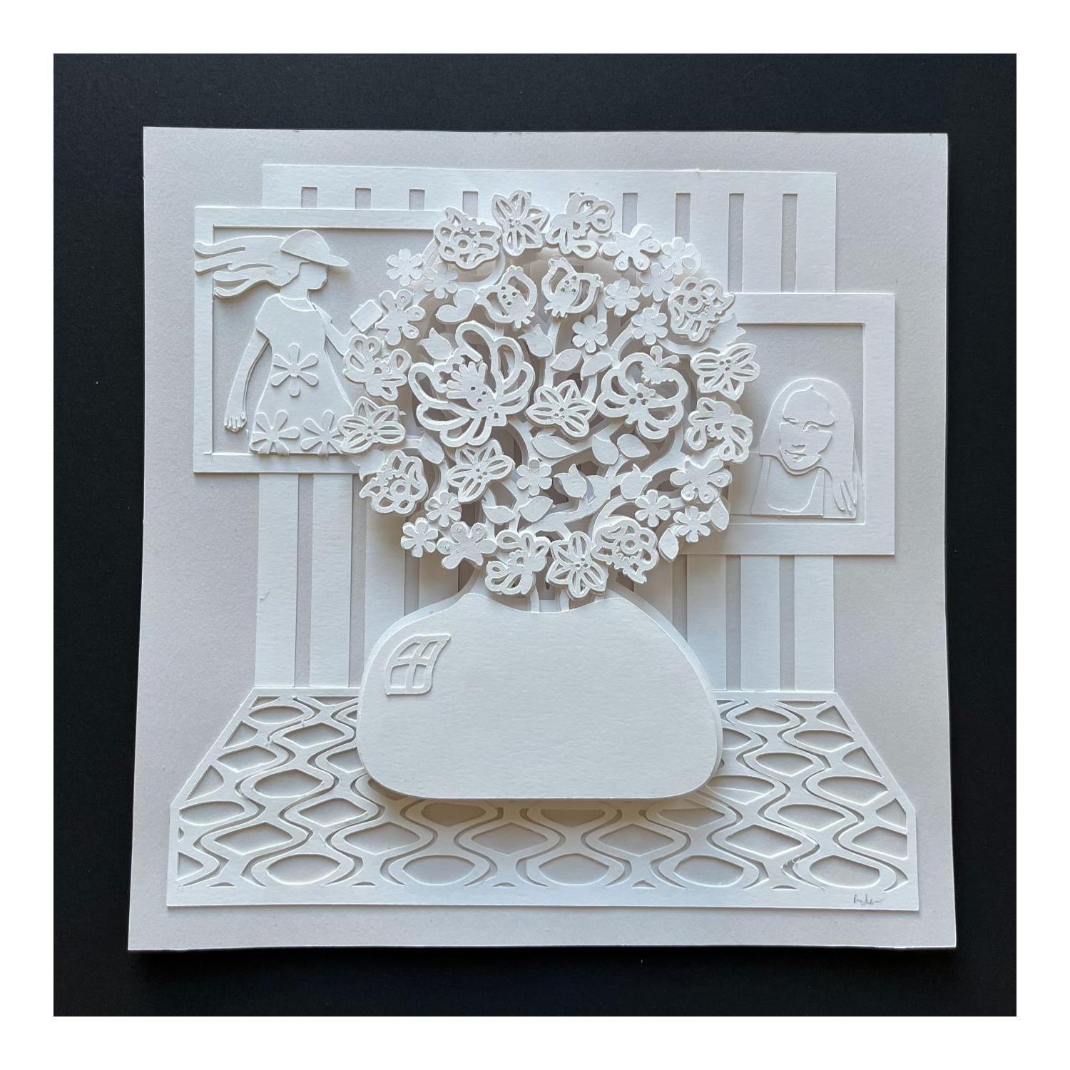 Painting Mona Looks On by Ryder Susan | Painting Figurative Still-life Minimalist Black & White Paper