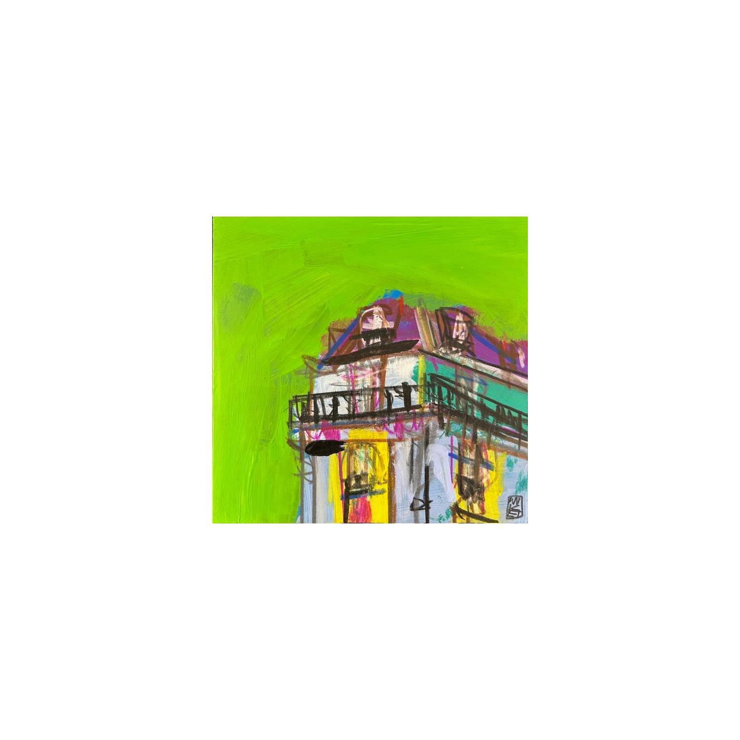 This unique and original contemporary artwork "L'immeuble en direction du boulevard" on the subjects of Architecture, Urban has been created by the contemporary artist Anicet Olivier.