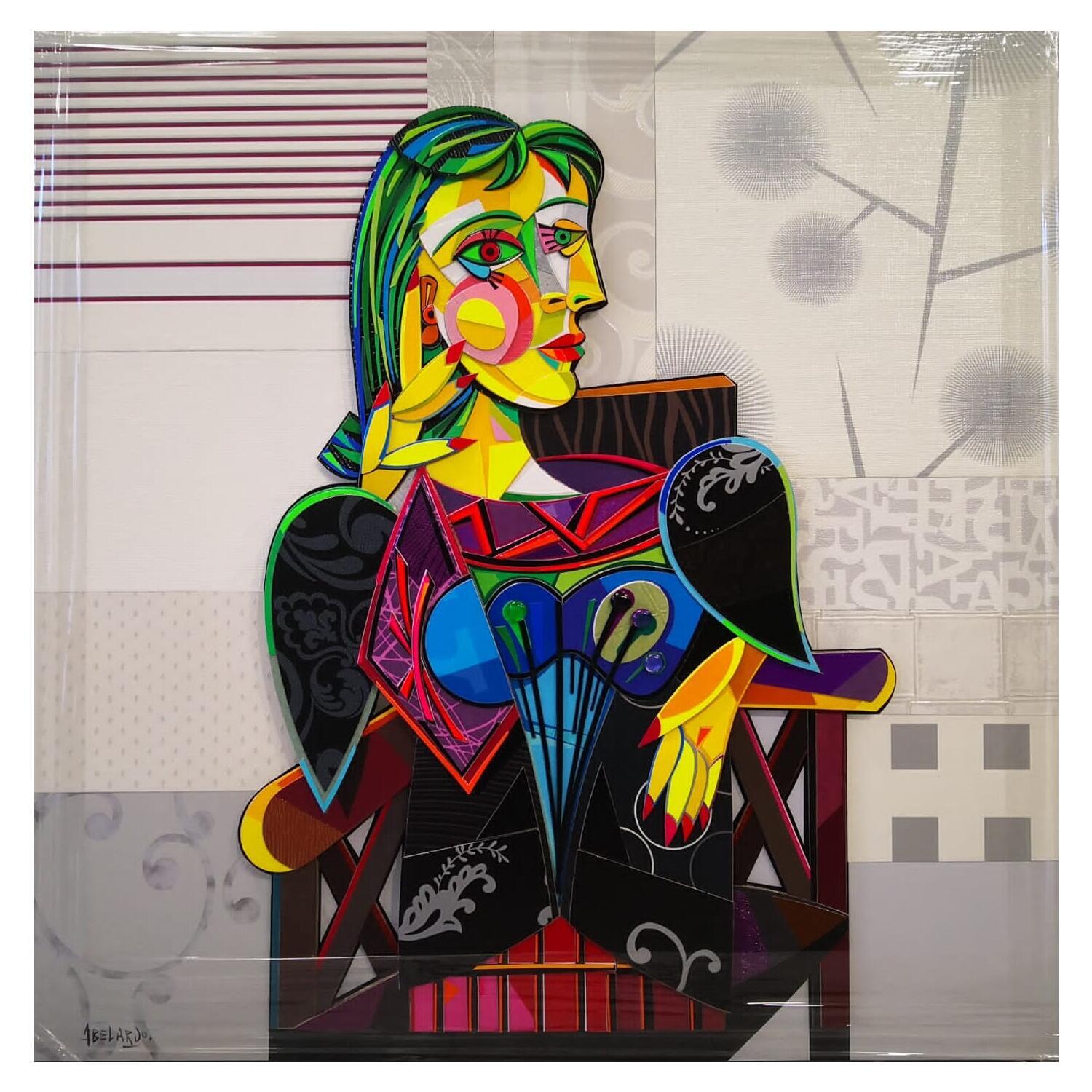 This unique and original contemporary artwork "Portrait de Dora Maar" on the subject of Pop icons has been created by the contemporary artist Hernandez Abelardo.