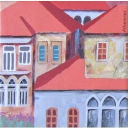 This unique and original contemporary artwork "Zahle Red Roofs" has been created by the contemporary artist Chammas Fady.