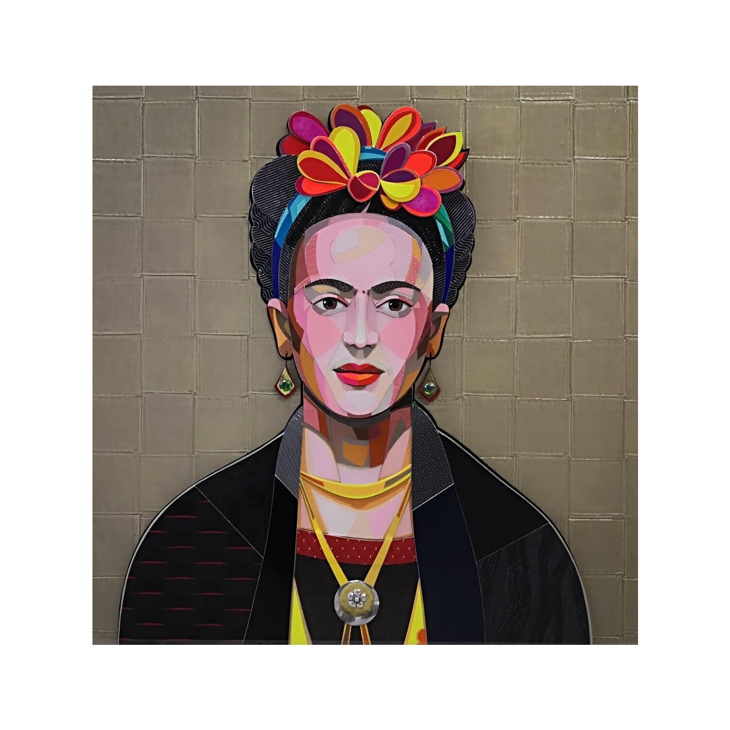 This unique and original contemporary artwork "Frida Khalo" on the subject of Pop icons has been created by the contemporary artist Hernandez Abelardo.