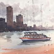Sailing with birdsPainting Sailing with birds by Dandapat Swarup | Painting Figurative Marine Watercolor