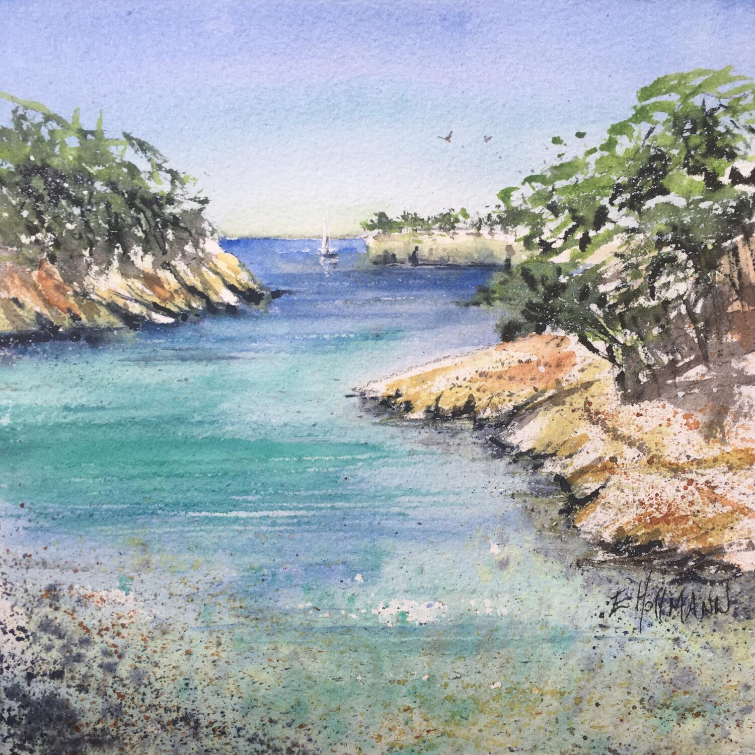 Painting Douce calanque by Hoffmann Elisabeth | Painting Figurative Urban Watercolor
