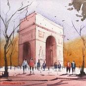 Arc de Triomphe, afternoon scenePainting Arc de Triomphe, afternoon scene by Dandapat Swarup | Painting Figurative Urban Watercolor