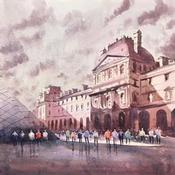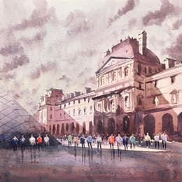 Louvre in the sunPainting Louvre in the sun by Dandapat Swarup | Painting Figurative Urban Watercolor