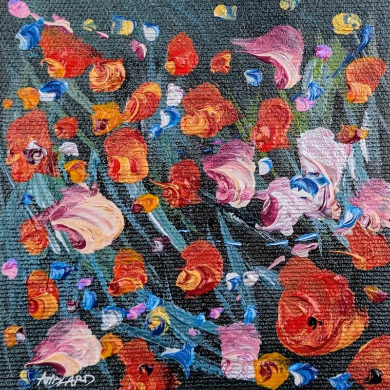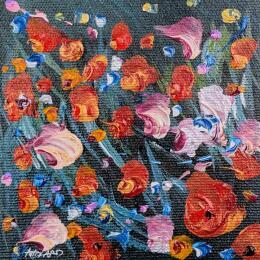 This unique and original contemporary artwork, "Coquelicots de nuit" (Poppies at Night), was created by contemporary artist Amblard Florence. The artist used a variety of techniques to create this small-format painting with its distinctive style.