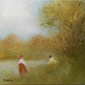 Près de l'étangPainting Près de l'étang by Moulia Francis | Painting Impressionism Life style Oil