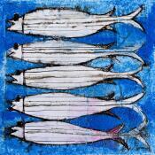 This unique and original contemporary artwork "Sardines bleues" on the subject of Animals has been created by the contemporary artist Colombo Cécile.