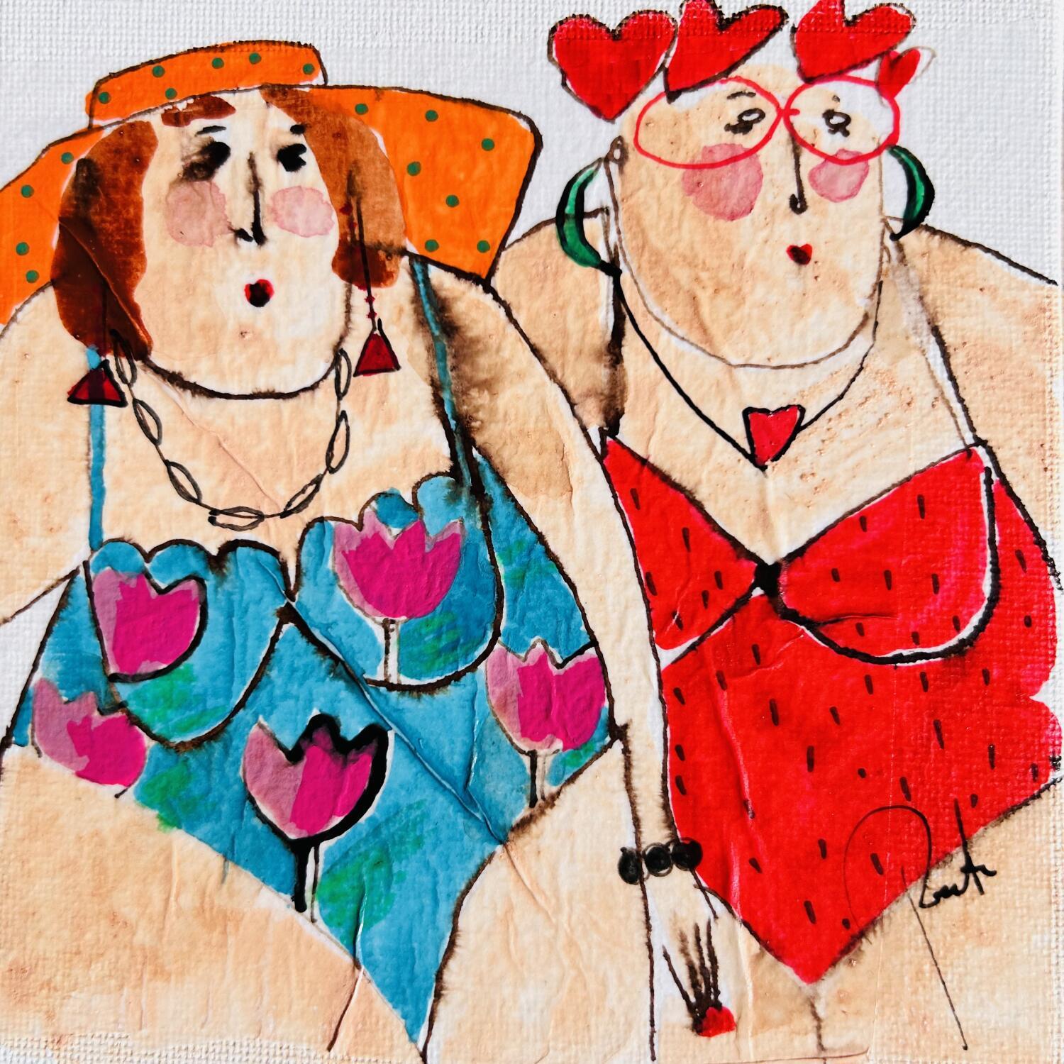 This unique and original contemporary artwork "Mylène et Annie" on the subject of Portrait has been created by the contemporary artist Colombo Cécile.
