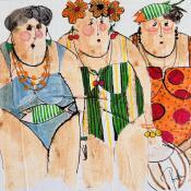 Painting Charlie Suzette Martha by Colombo Cécile | Painting Naive art Portrait Life style Watercolor Acrylic Gluing Ink Pastel