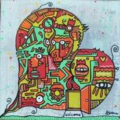 This unique and original contemporary artwork "It's open" was created by contemporary artist Fanny. The artist used the Acrylic technique to create this small-format painting on Pop-art canvas.