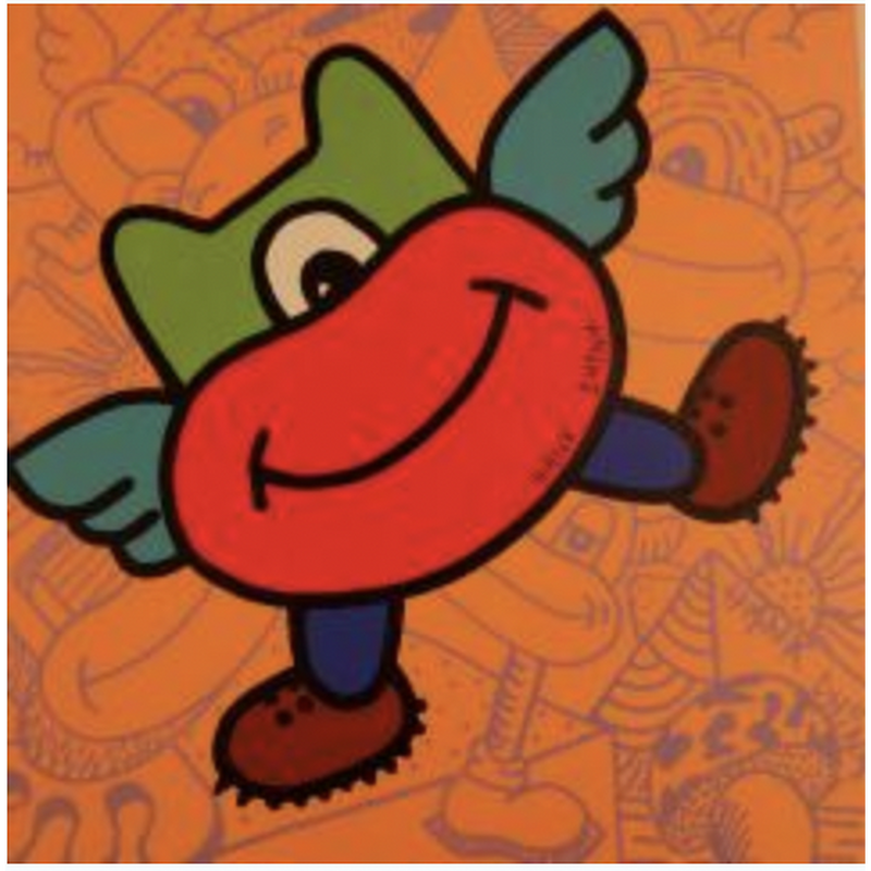 The artist used Acrylic, Posca media on Canvas to create this Pop-art, Small size painting.