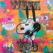 This unique and original contemporary artwork "Snoopy I phone" on the subject of Pop icons has been created by the contemporary artist Kikayou.