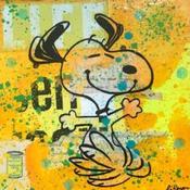 This unique and original contemporary artwork "Snoopy joyeux" on the subject of Pop icons has been created by the contemporary artist Kikayou.