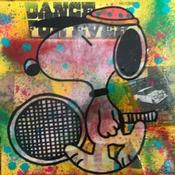 This unique and original contemporary artwork "Snoopy tennis" on the subject of Pop icons has been created by the contemporary artist Kikayou.