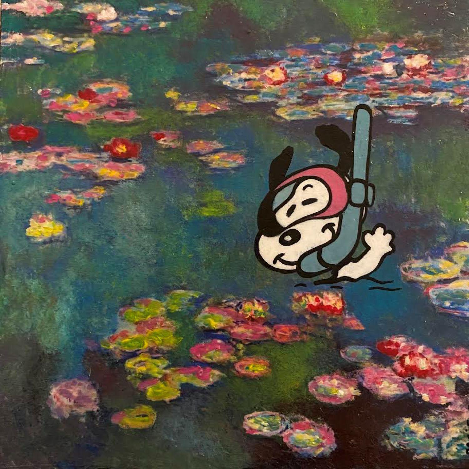 Painting F2 baignade dans les nymphéas (Monet) by Marie G.  | Painting Pop-art Pop icons Wood Acrylic