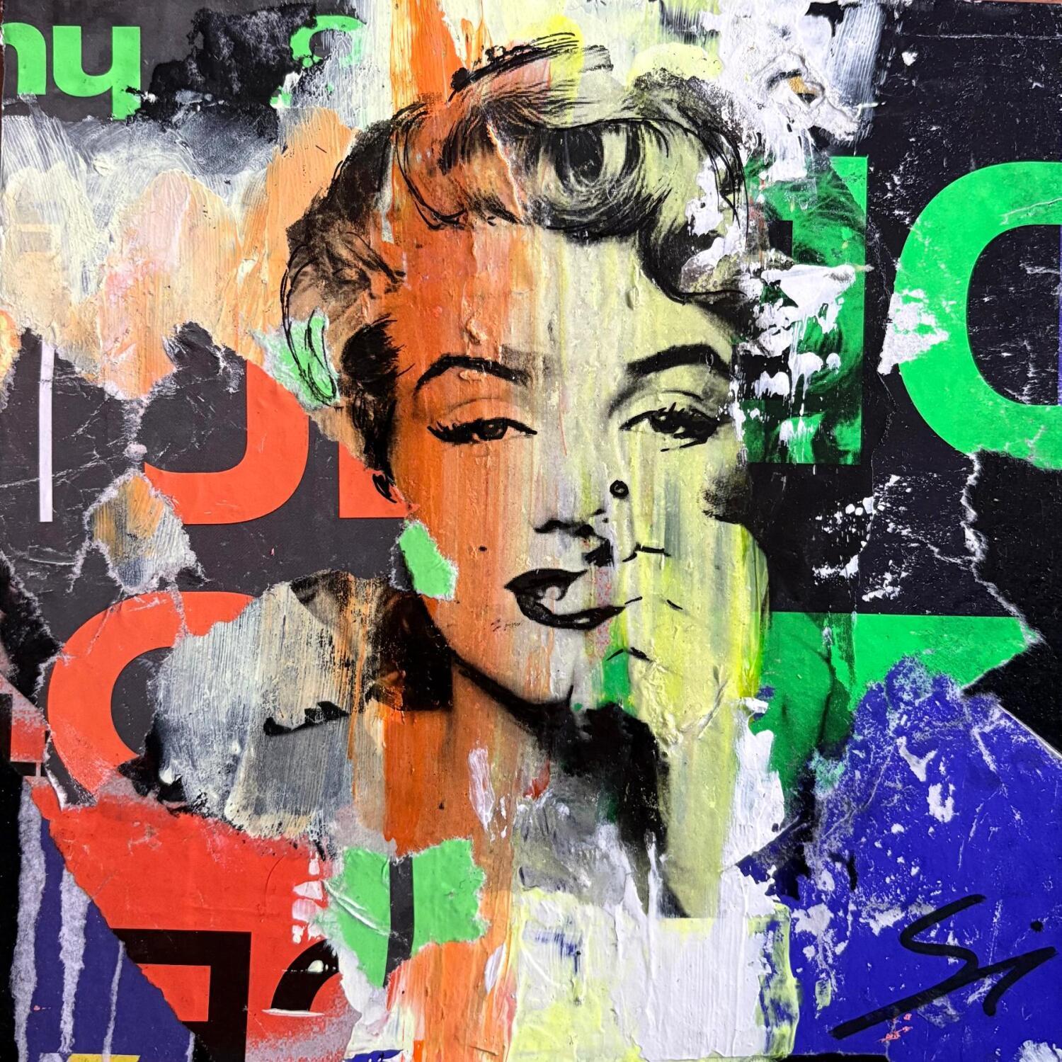This unique and original contemporary artwork "Marilyn smoking" on the subject of Pop icons has been created by the contemporary artist Mestres Sergi.