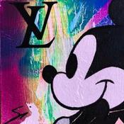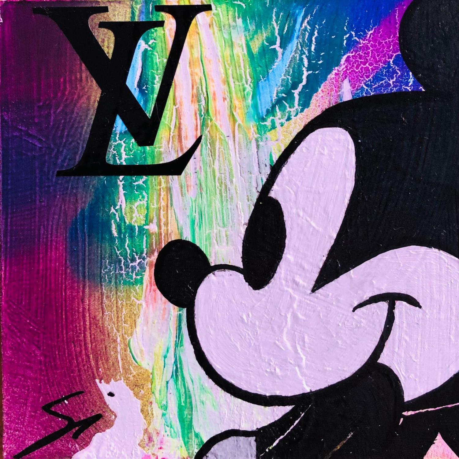 This unique and original contemporary artwork "Mickey is happy" on the subject of Pop icons has been created by the contemporary artist Mestres Sergi.