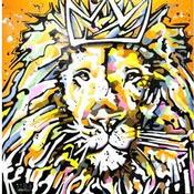 Painting Pop lion king, orange by Cornée Patrick | Painting Pop-art Animals Graffiti Oil