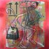 The artist used Graffiti, Cardboard, Acrylic, Gluing media on Cardboard to create this Pop-art, Small size painting.